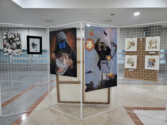 ![]() ▲ 김서경, 박재동, 아트만두, 이하, 정민주 등 30명의 작가가 참여하는 ‘굿바이 전’이 9일부터 13일까지 국회 의원회관 2층 로비에서 열릴 예정이었다. 하지만 국회 사무처가 9일 새벽 설치된 작품들을 기습적으로 철거했다. 사진은 8일 설치했던 작품 중 일부이다. © 이호 작가 |