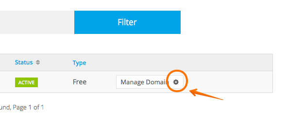 화면에서 "Manage Domain" 톱니바퀴 아이콘을 클릭 합니다.