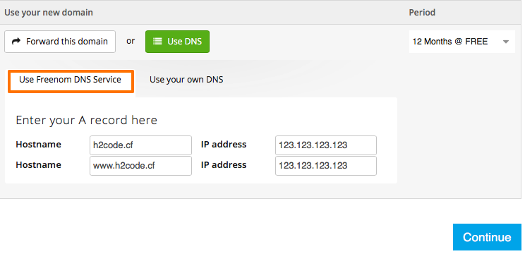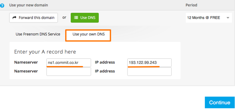 Manage Freenon DNS 를 통해서 아래의 메뉴로 들어 갑니다.![]()