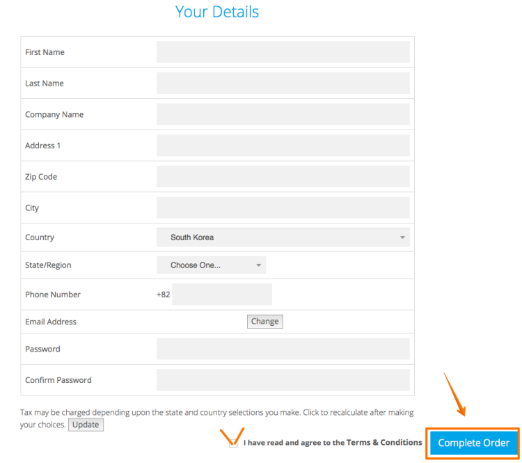 입력 항목에 대해서 입력 후 아래 하단에 체크 후 "Complete Order"를 클릭합니다.![]()