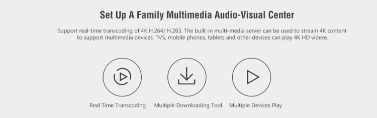 ● 4K H.264 / H.265 실시간 트랜스 코딩을 지원합니다. 내장형 멀티미디어 서버는 4K 콘텐츠 스트리밍으로 멀티미디어 장치를