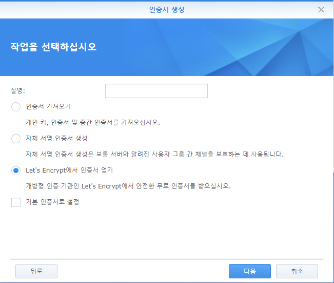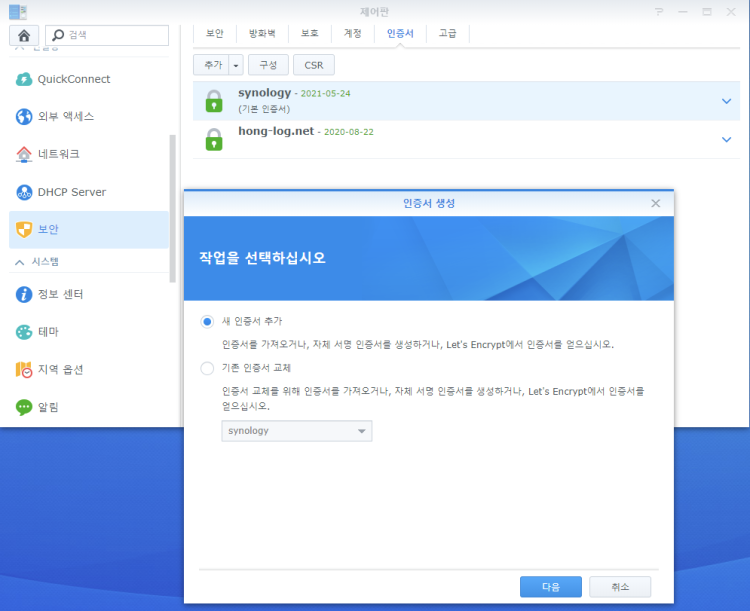 시놀로지에는 Let’s Encrypt 인증서를 자동 발급해주는 매우매우 편리한 기능이 있다.