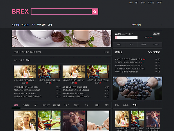 ※ 본 테마는 그린팩을 기반으로 야간모드를 구현한 것입니다.1. 브렉스 포털 다크팩 1.0깔끔하고 분주한 느낌을 주는 비반응형/모바일 테마(분리형)포털 및 커뮤니티 구성에 용이아미나에 아직 미숙한 사용자가 사용하기 적합!주의: 사용자가 소스 수정해야하는 수준은 미소 베이직팩과 별 차이 없음.어두운 환경에서 눈을 보호할 수 있는 다크테마PC - 메인페이지 상단 메뉴 우측에 다크테마모바일 - 하단 푸터에 다크테마2. 사용조건아미나ALLBootstrap3, HTML5, CSS3IE8 이상, Chrome, Firefox, Safari, O…