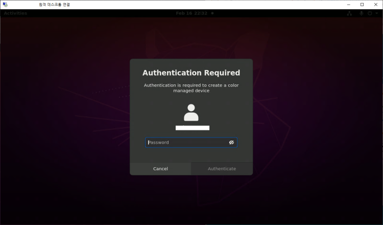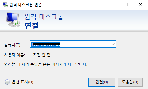 Windows에서 원격 데스크톱 연결 프로그램으로 재접속하여 정상적으로 인증 화면이 나오는지 확인합니다.