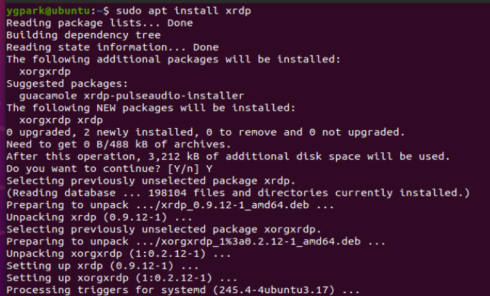 먼저 Ubuntu에서 다음과 같이 Xrdp를 설치합니다.
